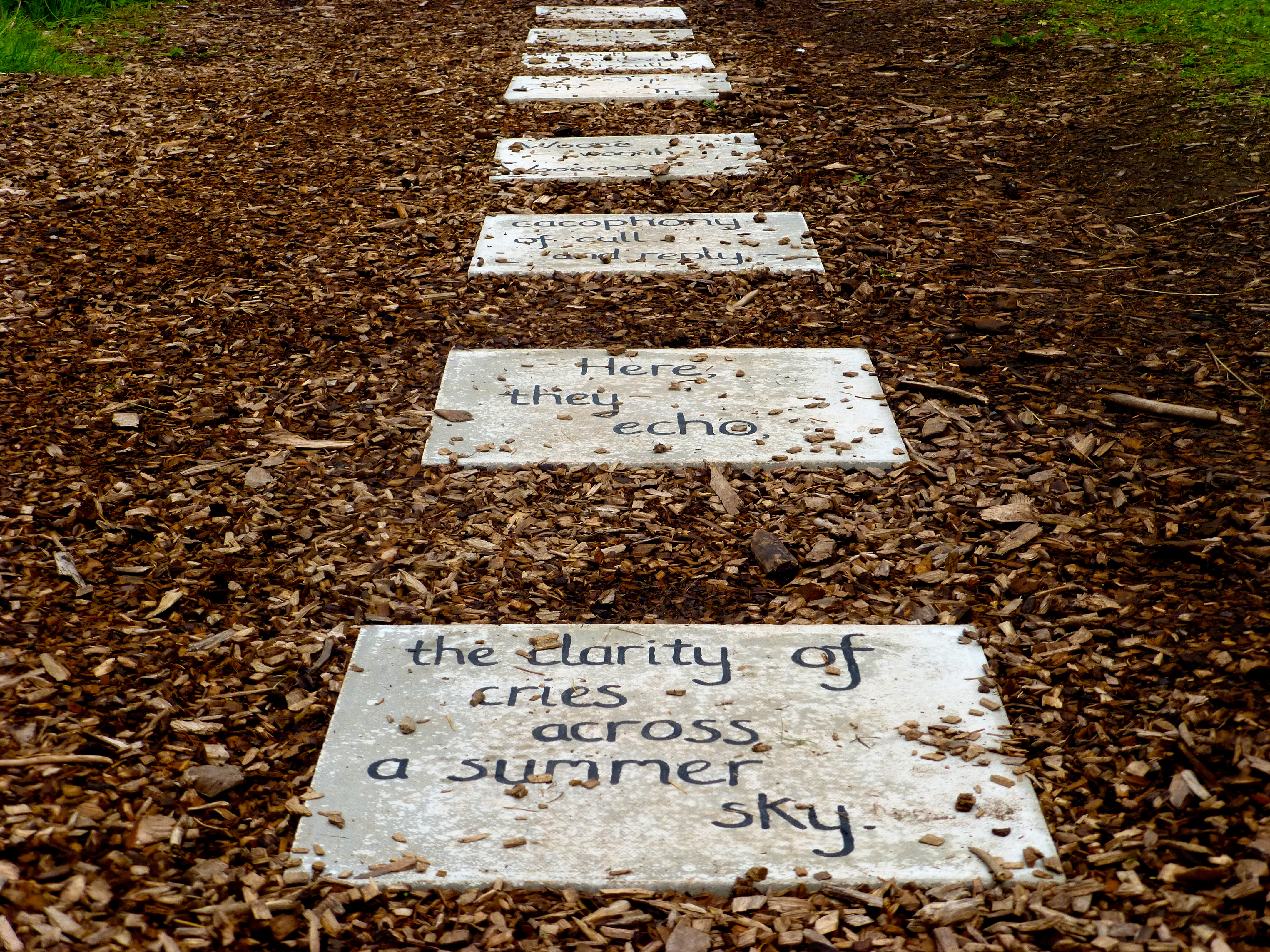 We walked over poems, set in the ground as paving stones; found them tucked into crevasses, shining quietly.
