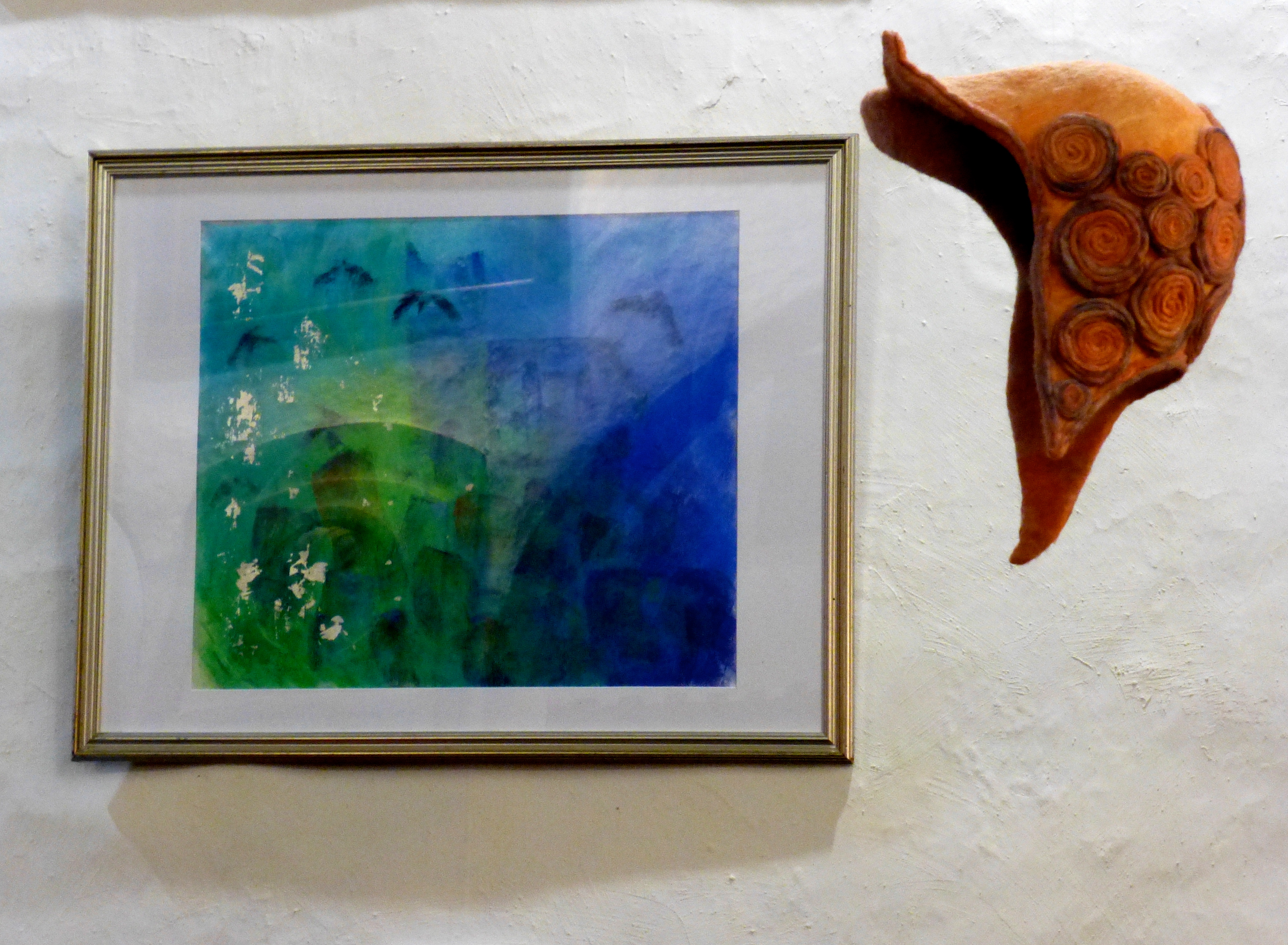 This shows Melissa Harwood’s different take on Mark Ward’s jackdaws, as well as one of Victoria Relph’s fabulous floating hats (I believe in response to Mary Chuck’s poem):